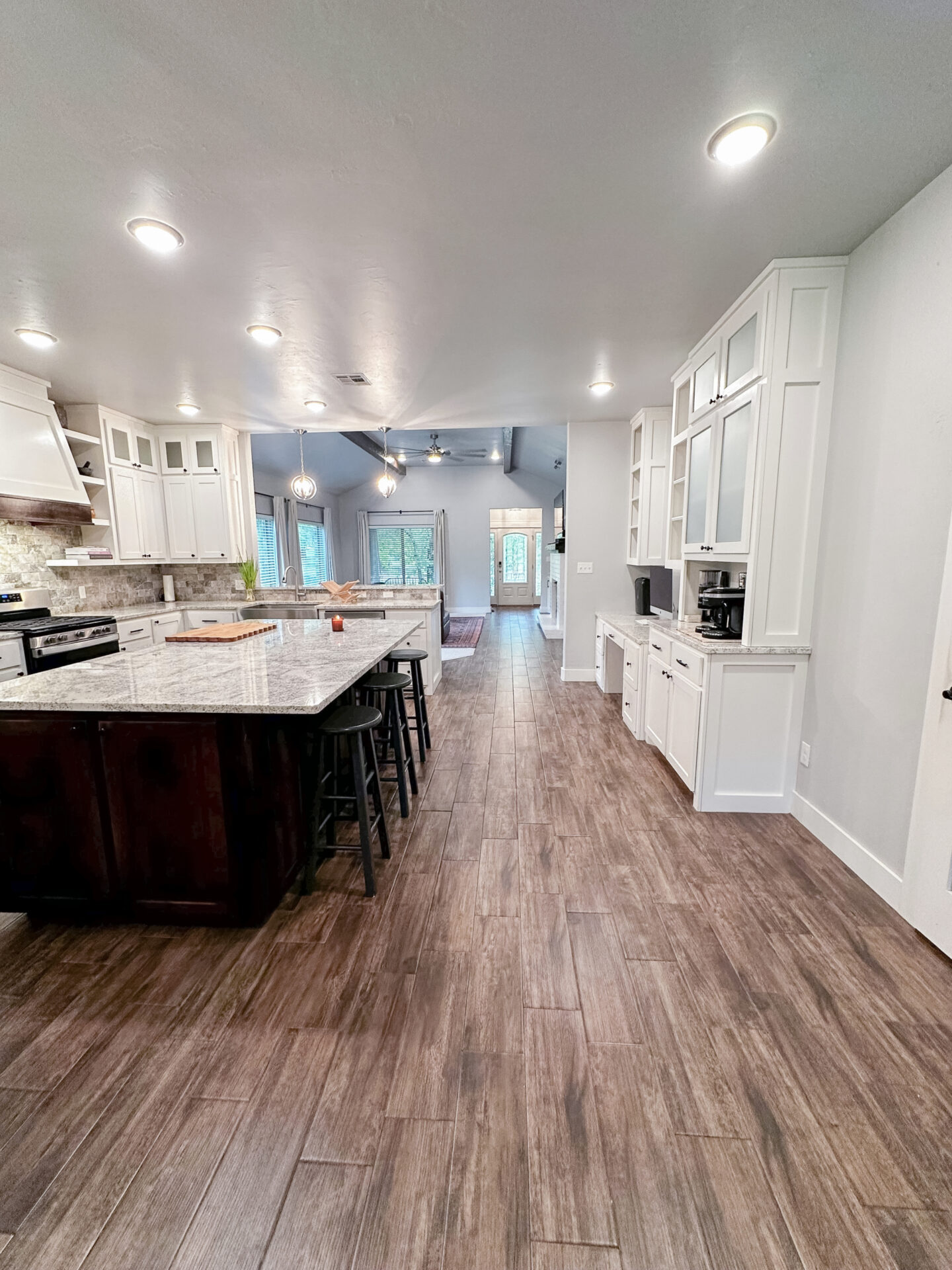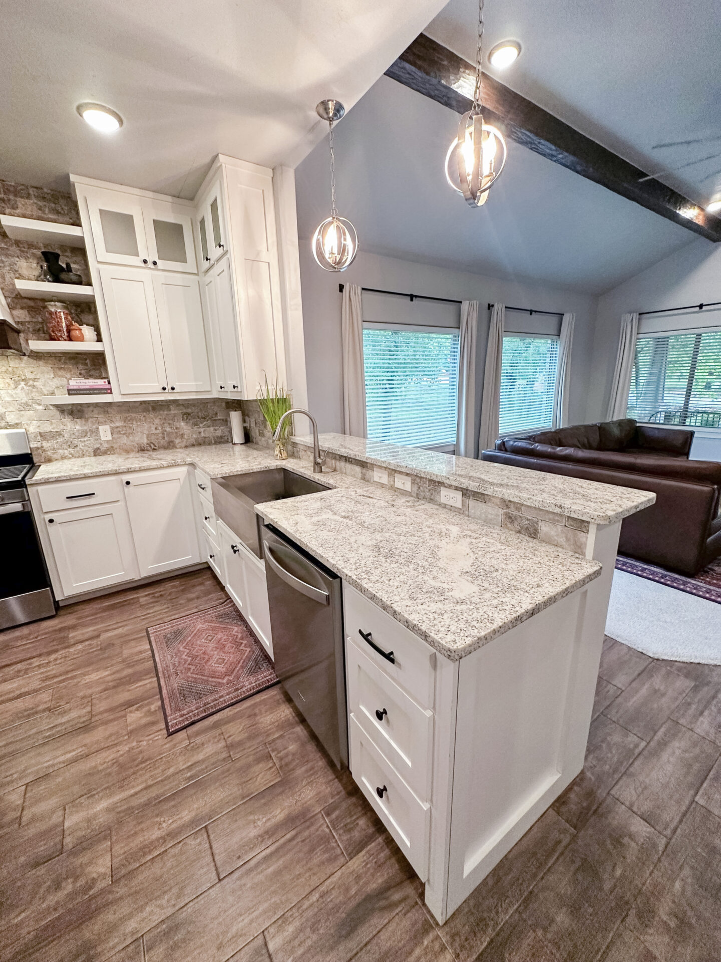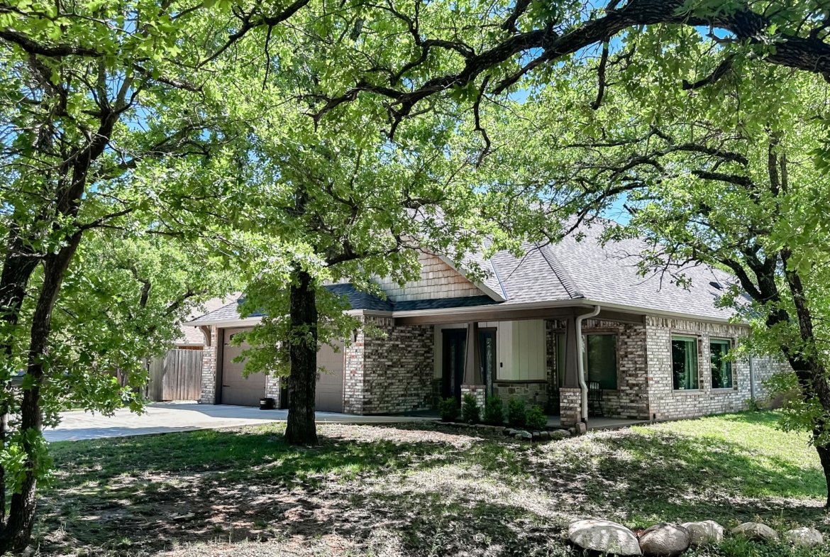 You don’t want to miss this lovely home nestled in the nature of Medicine Park. This 3 bedroom, 2 bath, 2 car garage home has high ceilings and enormous windows to offer you a panoramic view of the gorgeous landscape. It has a fireplace in the living room and a spacious kitchen. The modern kitchen has it all from granite countertops to stainless steel appliances and plenty of counter space and hidden storage. Other features include a walk-in shower, mudroom off garage, 2 covered porches and an extra bonus garage or shop (16X26) This home is spectacular!